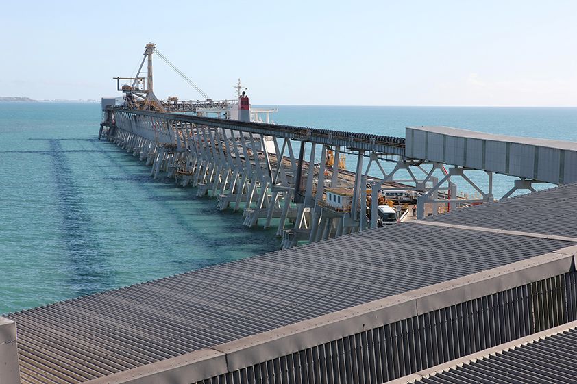 The terminal expansion involved the addition of a third outloading conveyor stream to feed a new 6,000 tonne per hour ship-loader. To achieve this, a 400- metre long wharf extension was required, including 800 metres of additional wharf widening, onshore and offshore transfer towers, a new wharf approach jetty, 1.5km onshore conveyor works, and the manufacture and installation of a shiploader.