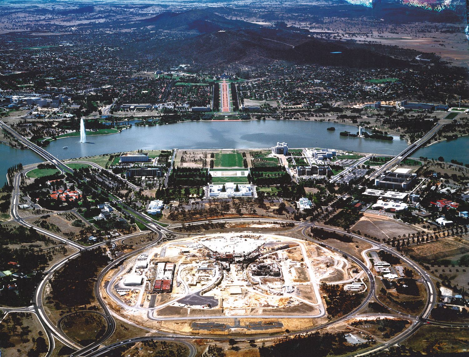 Development of the new Parliament House was one of Australia’s most complex and ambitious projects. The design is based on the shape of two boomerangs and is topped by an 81-metre flagpole. Parliament House is visited by over 10,000 people daily and provides accommodation for 3,500 people.