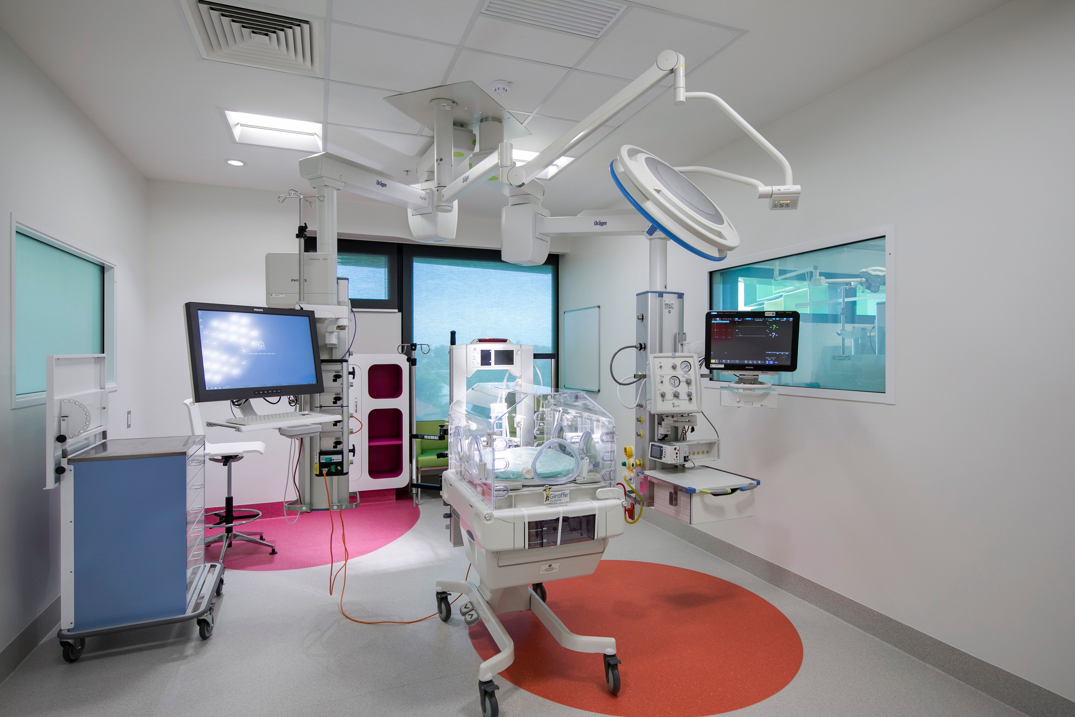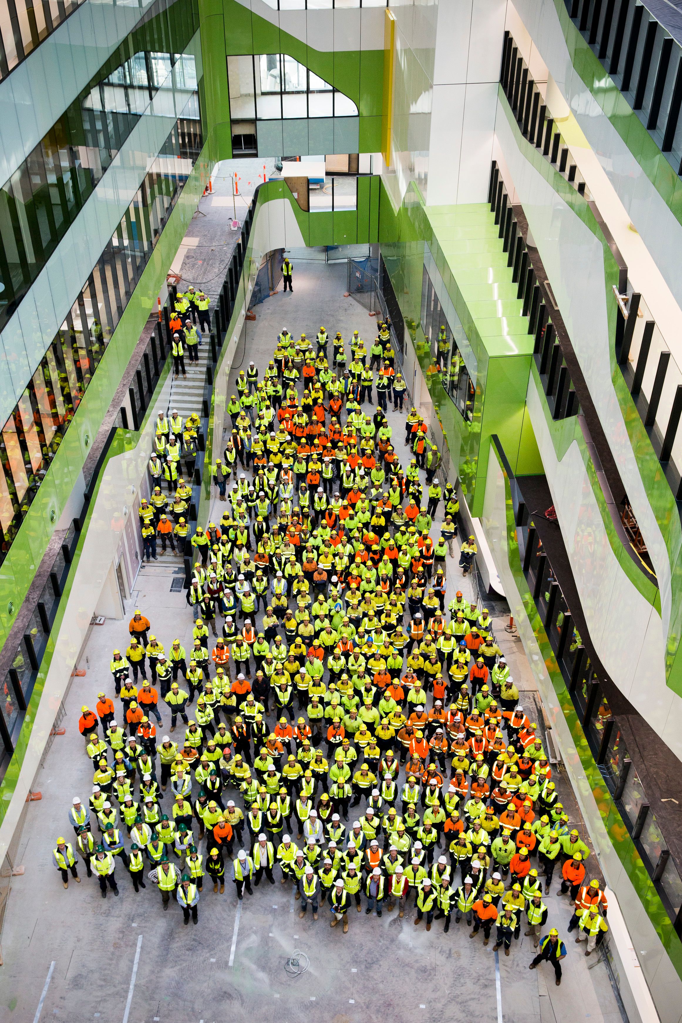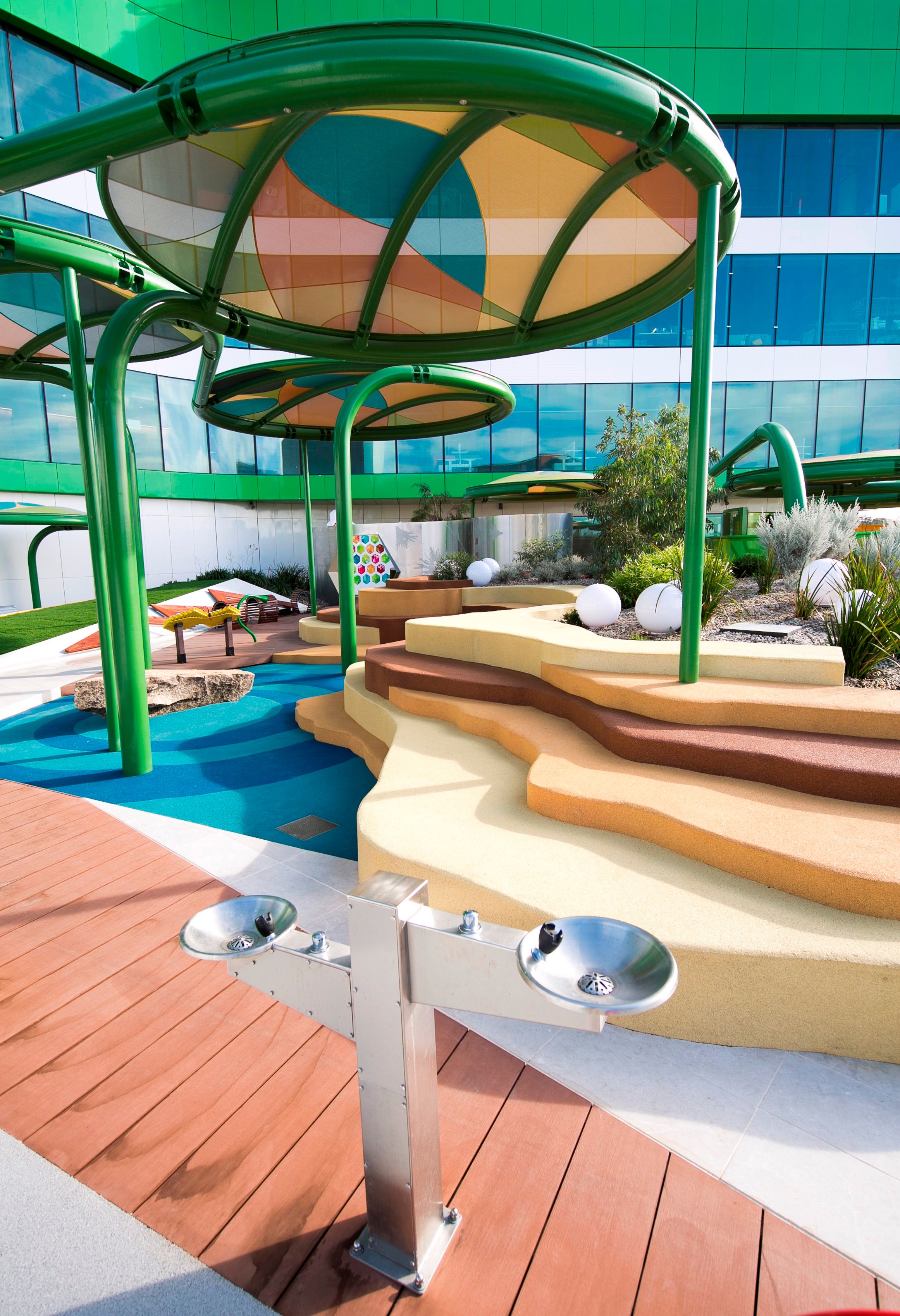 The 120,000sqm building comprises four interconnected blocks that extend up to ten storeys over an extensive basement that covers the footprint of the hospital. The 298-bed hospital has 12 multi-use theatres, 75 per cent single rooms with parent beds in each standard room, parent lounges on every floor, green spaces, entertainment facilities and a helicopter landing pad.